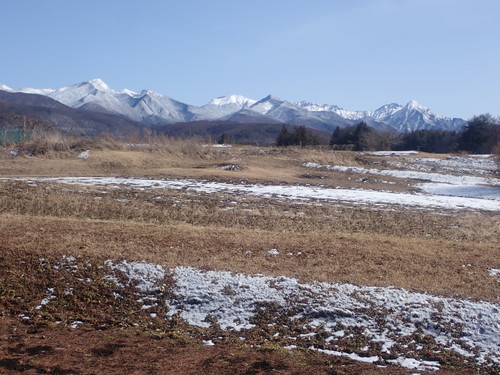 1/18入笠山。雪が少なく入笠湿原の木道は雪がなく出ていました。